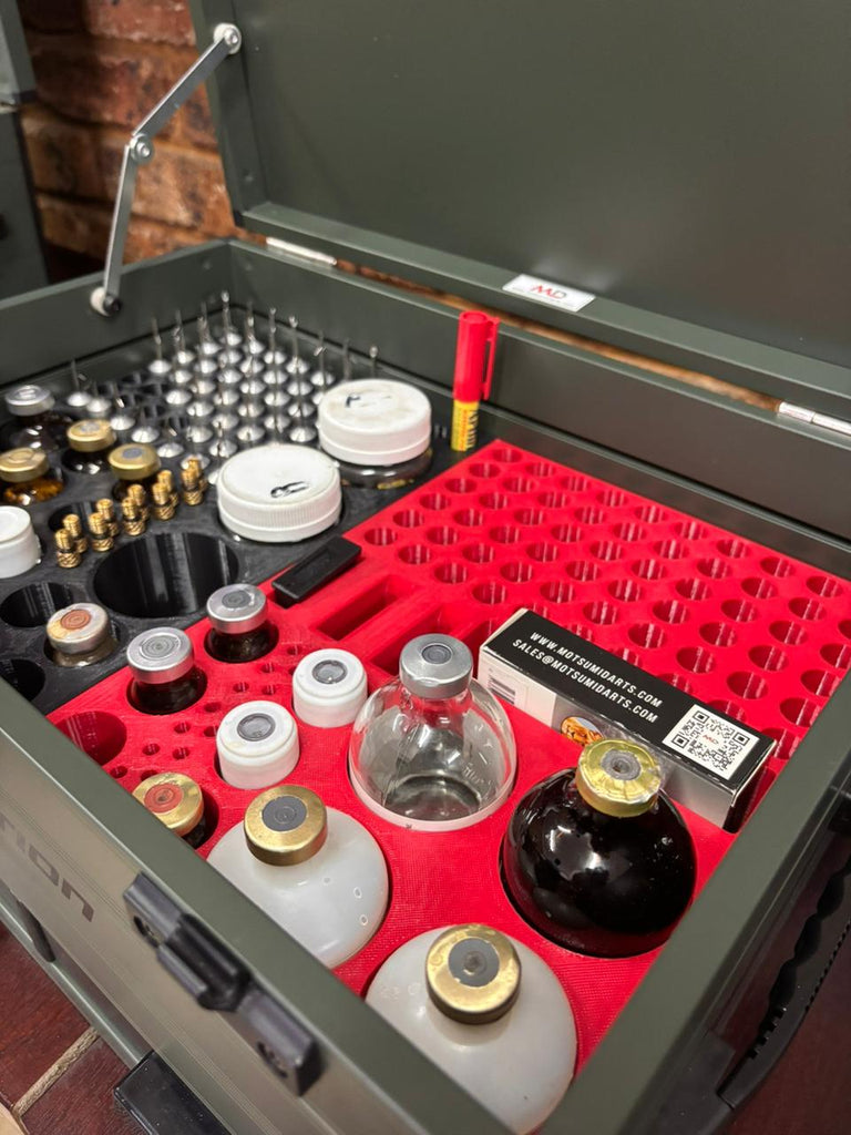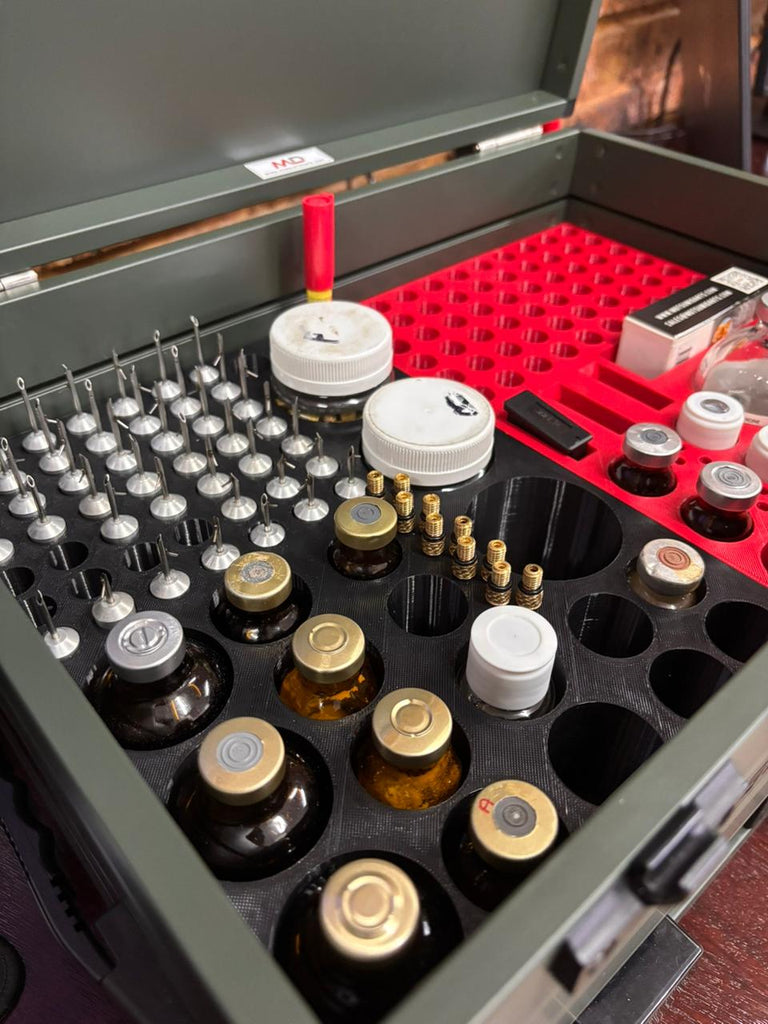 This versatile medicine/darting box is designed to keep essential equipment organized and within reach. Perfect for wildlife veterinarians, it provides a convenient and portable storage solution for darting equipment, medications, and other vital supplies. Made from non-perishable and strong materials, this box withstands the demands of fieldwork. Featuring an extra lightweight aluminum exterior and a durable 3D-printed plastic insert, optimizing organization while minimizing weight. Its compact design makes it easy to carry in the field, ensuring that you have everything you need to effectively treat and manage wildlife. A must-have for any wildlife veterinary professional.